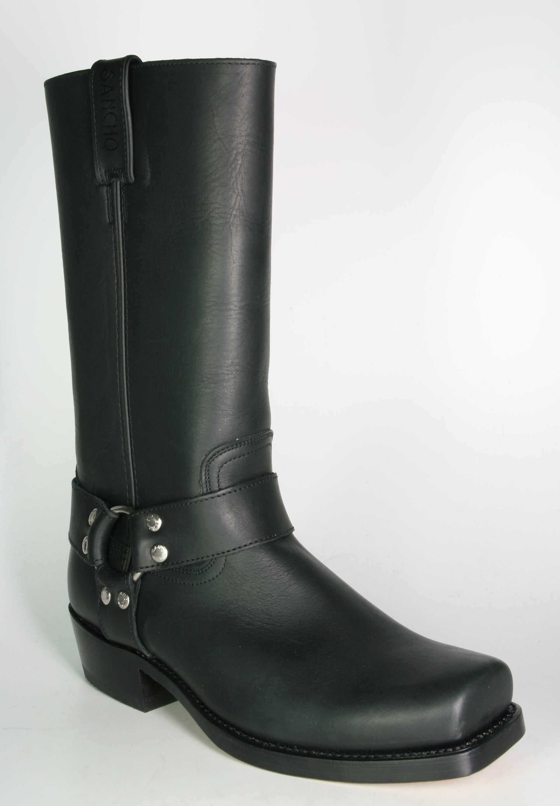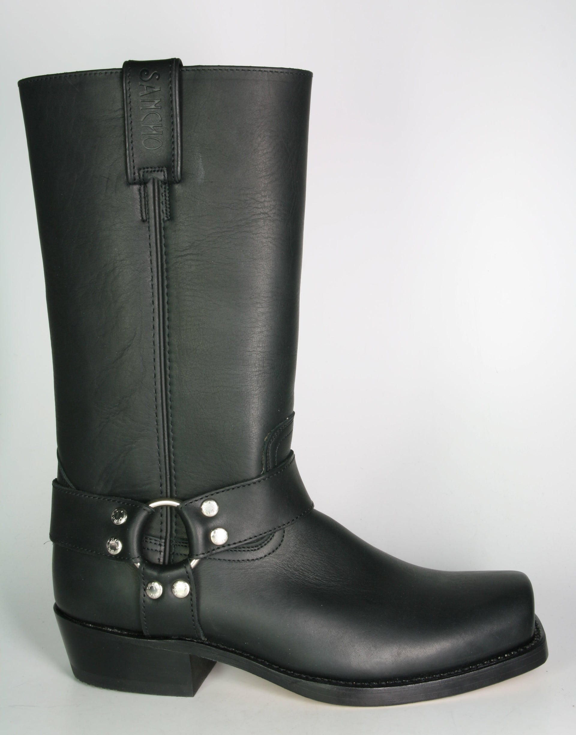 Bikerboots von Sancho in der klassischen Bikerboots-Form. Schwarzes Rindsleder.