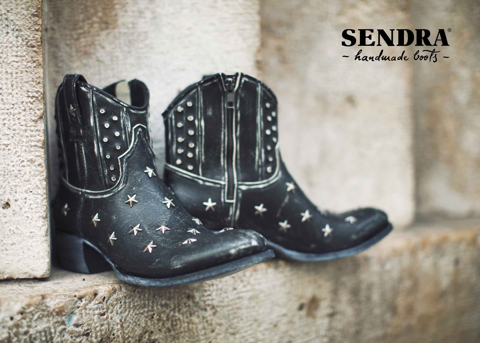 Sendra Stiefel in runder Form. Die silberfarbenen Sternnieten verleihen dem Stiefel seine Coolness. Die Used-Optik des Leders macht den Look aus. Auch für Frauen mit etwas stärkeren Waden geeignet, da der Schaft kürzer ist. An der Innenseite ist ein kleiner Reißverschluss zum besseren Einstieg.