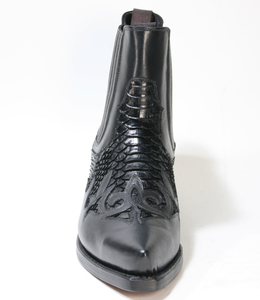 Stiefeletten von Mayura mit Flammenmuster. Die Kombination aus Rindsleder und echtem Pythonleder bietet eine edle Optik. Sehr bequeme Passform und hervorragende Qualität Made in Spain.