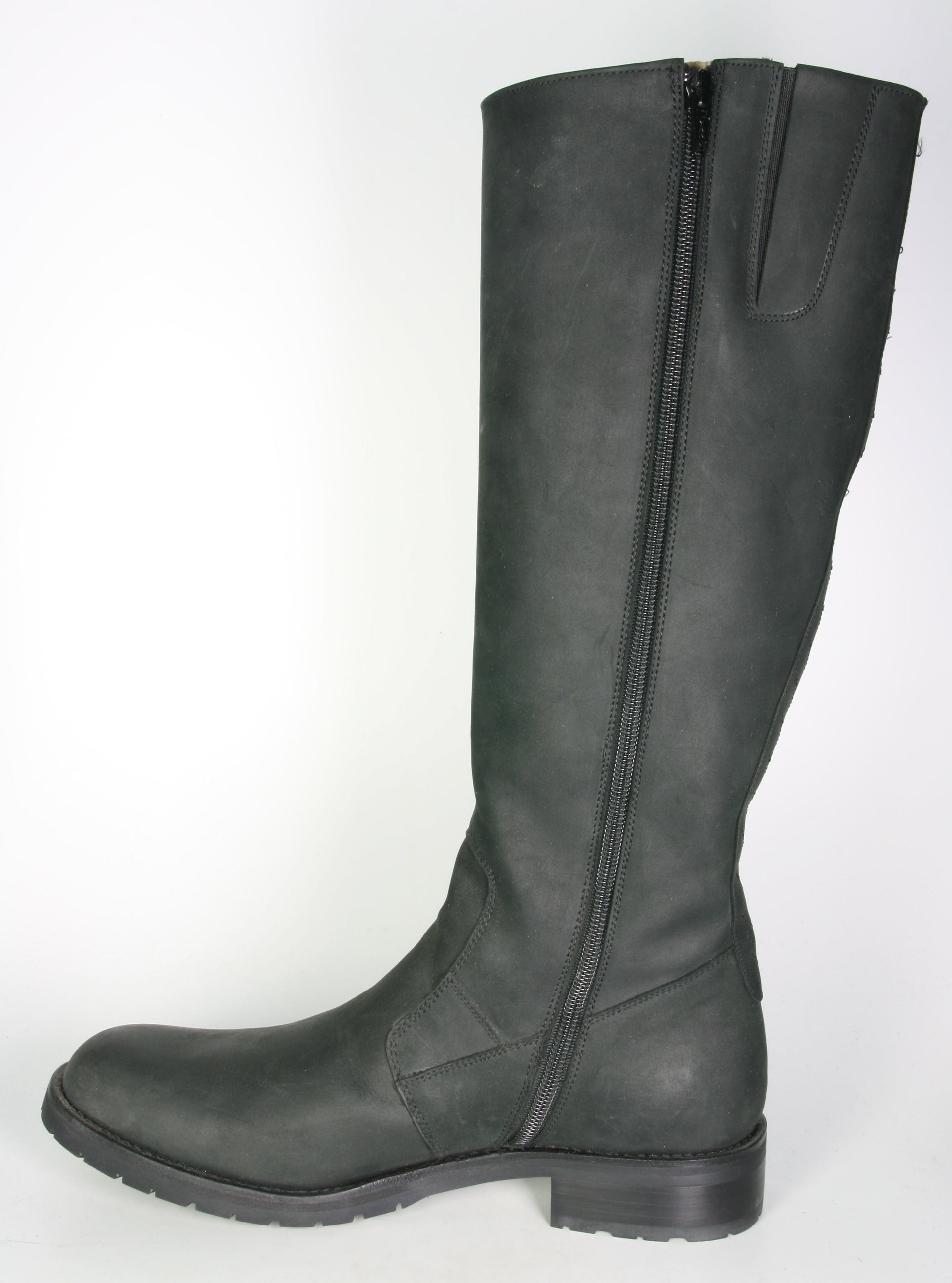 Sancho Schaftstiefel aus schwarzem, geöltem Rindsleder. Schafthöhe ca. 39 cm Absatzhöhe ca. 3 cm Reißverschluss an der Innenseite