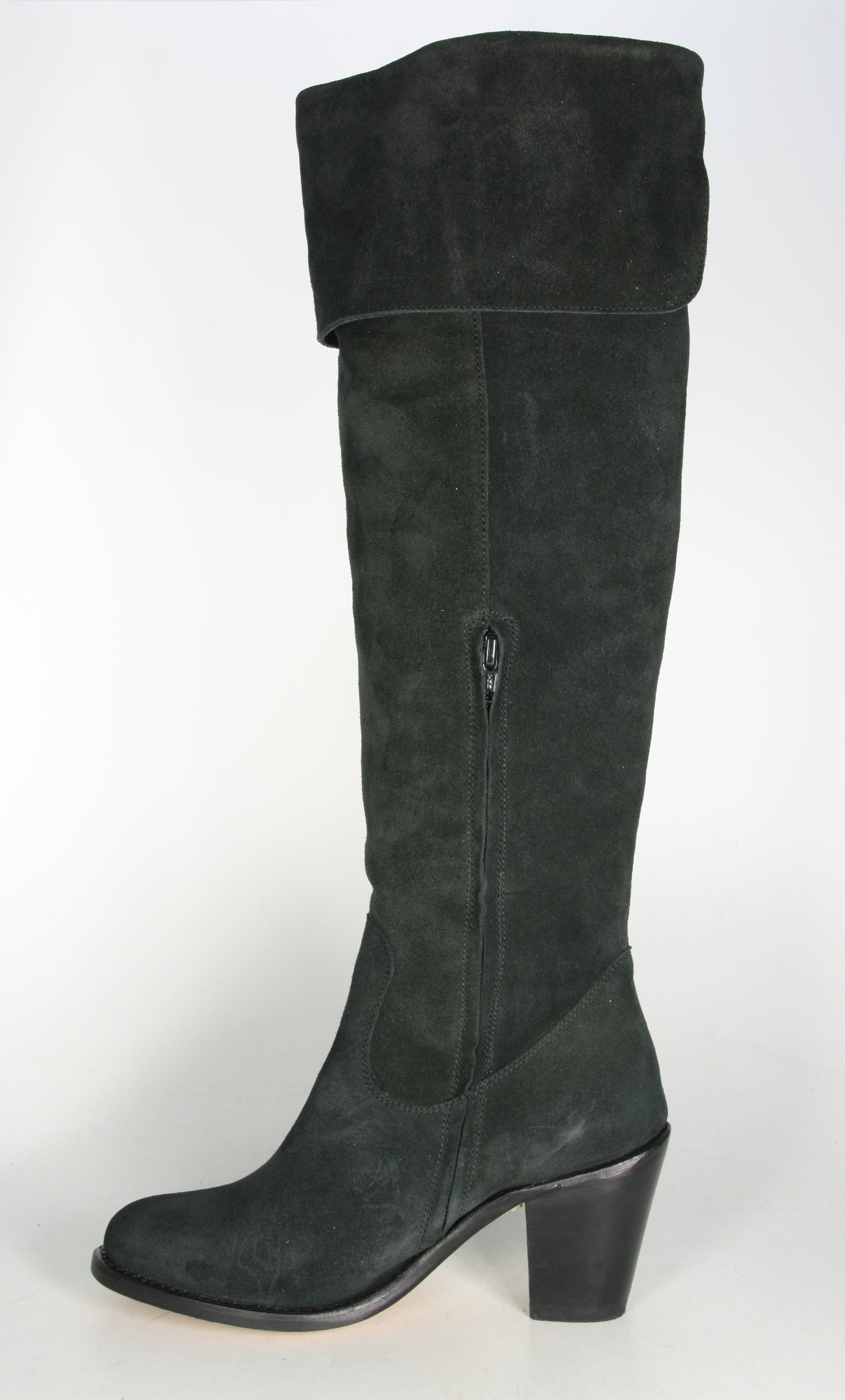 Sancho Overkeees Stiefel aus softem Wildleder. Der halbe Reißverschluss an der Innenseite ermöglicht einen leichteren Einstieg. Sehr bequeme Passform und der hohe Absatz ist sehr angenehm zu laufen. Schafthöhe ca. 45 cm Der Schaft kann auch hochgeklappt werden und als Overknees tragbar (Höhe ca. 56 cm) Absatzhöhe ca. 7,5 cm Rahmengenäht und komplett aus Leder.