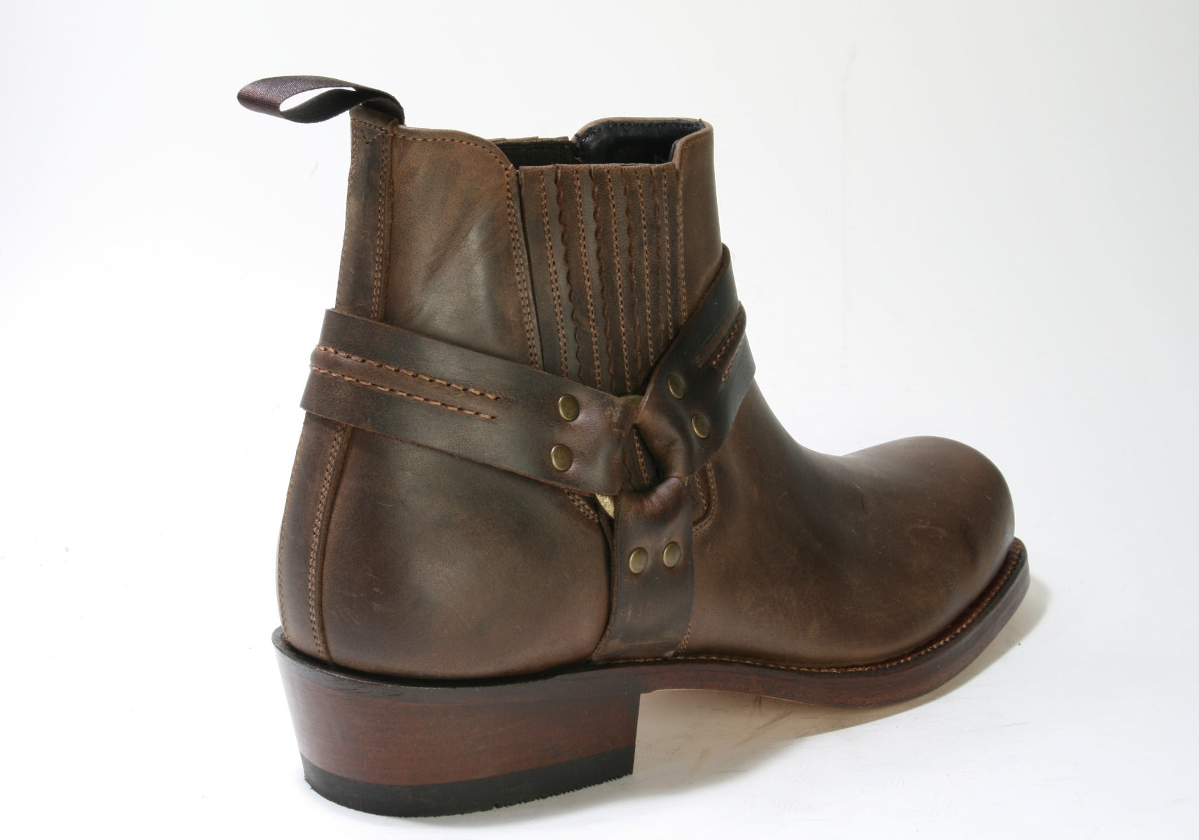 Bikerboots Stiefeletten in braunem, geöltem Leder. Absatzhöhe ca. 3,5 cm Schafthöhe ca. 14 cm Ledersohle