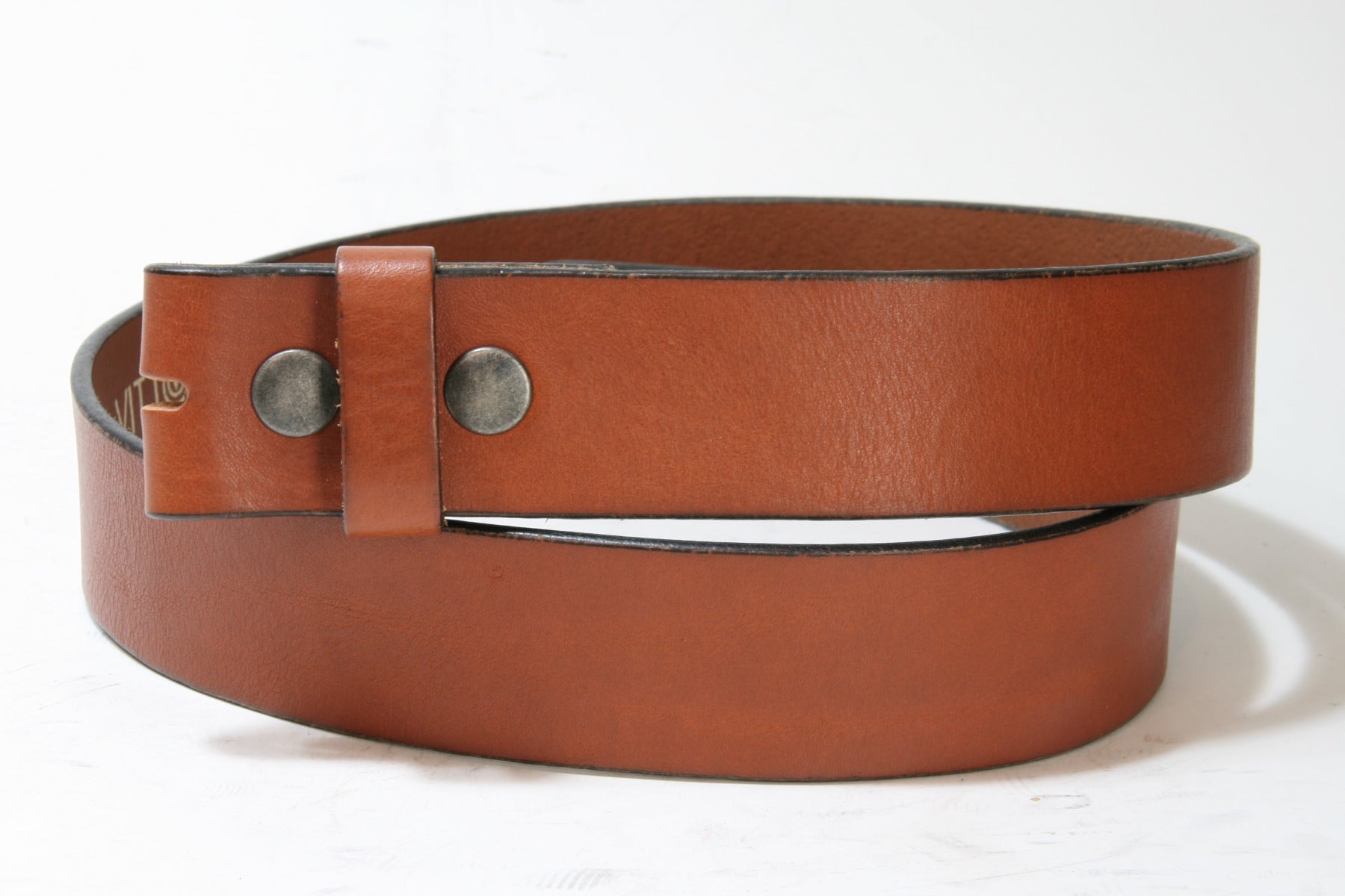 Wechselgürtel aus Rindsleder ohne Schließe. Mit den Druckknöpfen kann der Gürtel geöffnet werden um die Schließe anzubringen.