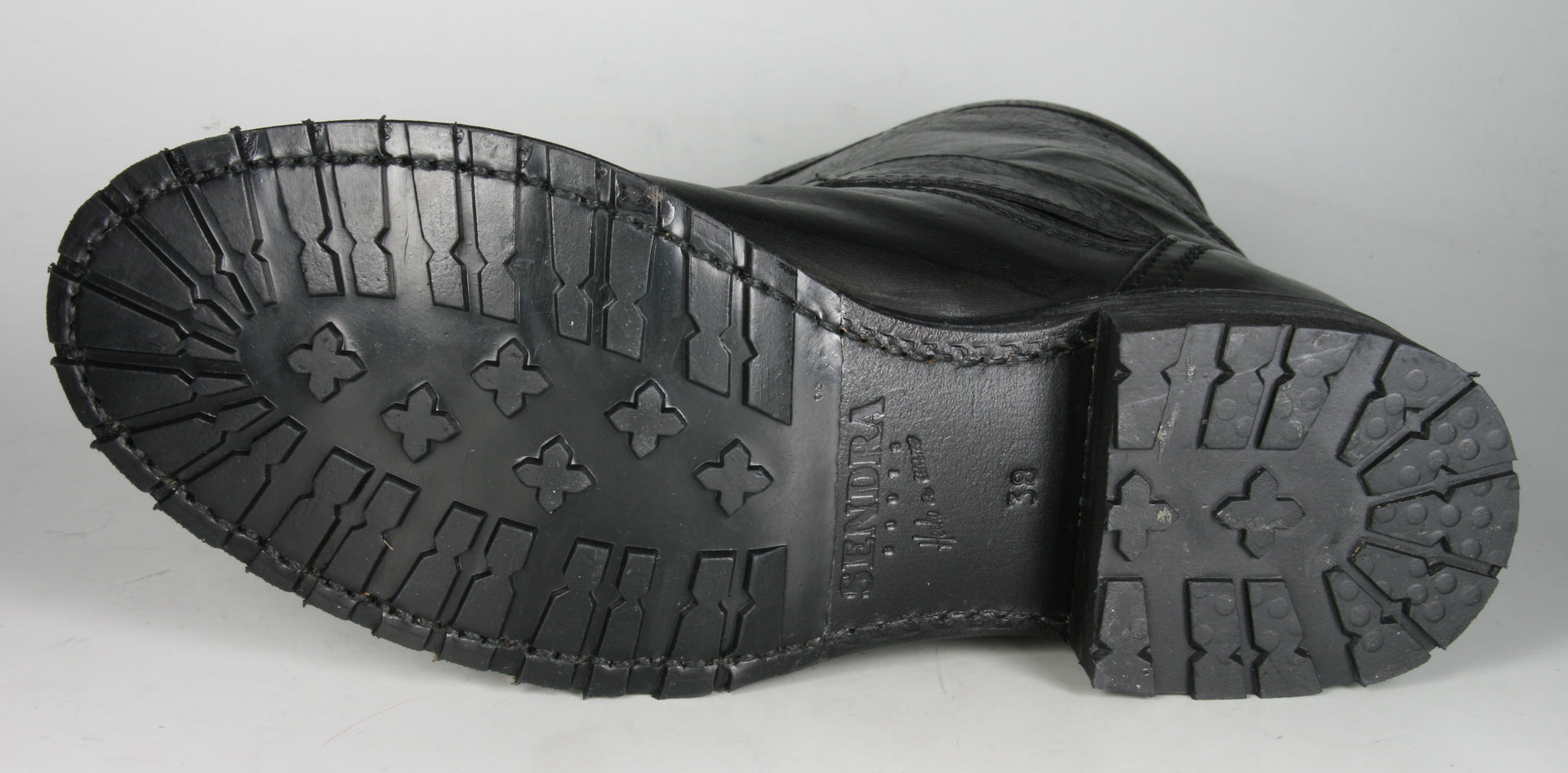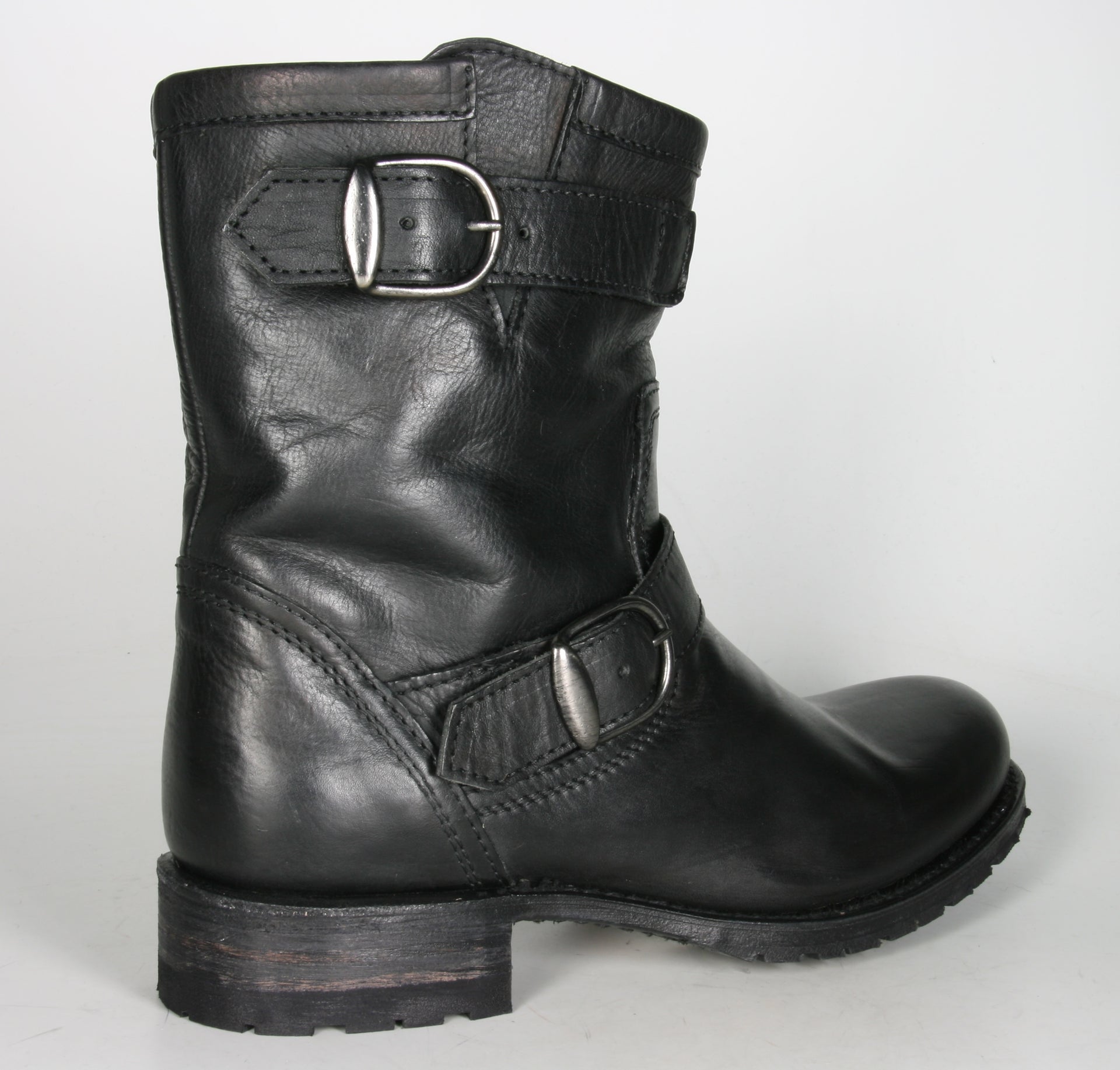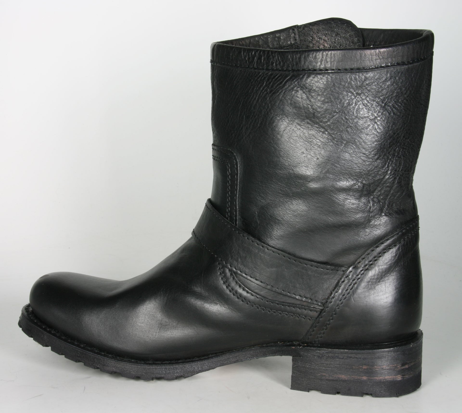 Sendra Bikerboots aus schwarzem Rindsleder. Die Gummi-Profilsohle schützt vor Nässe und Kälte..