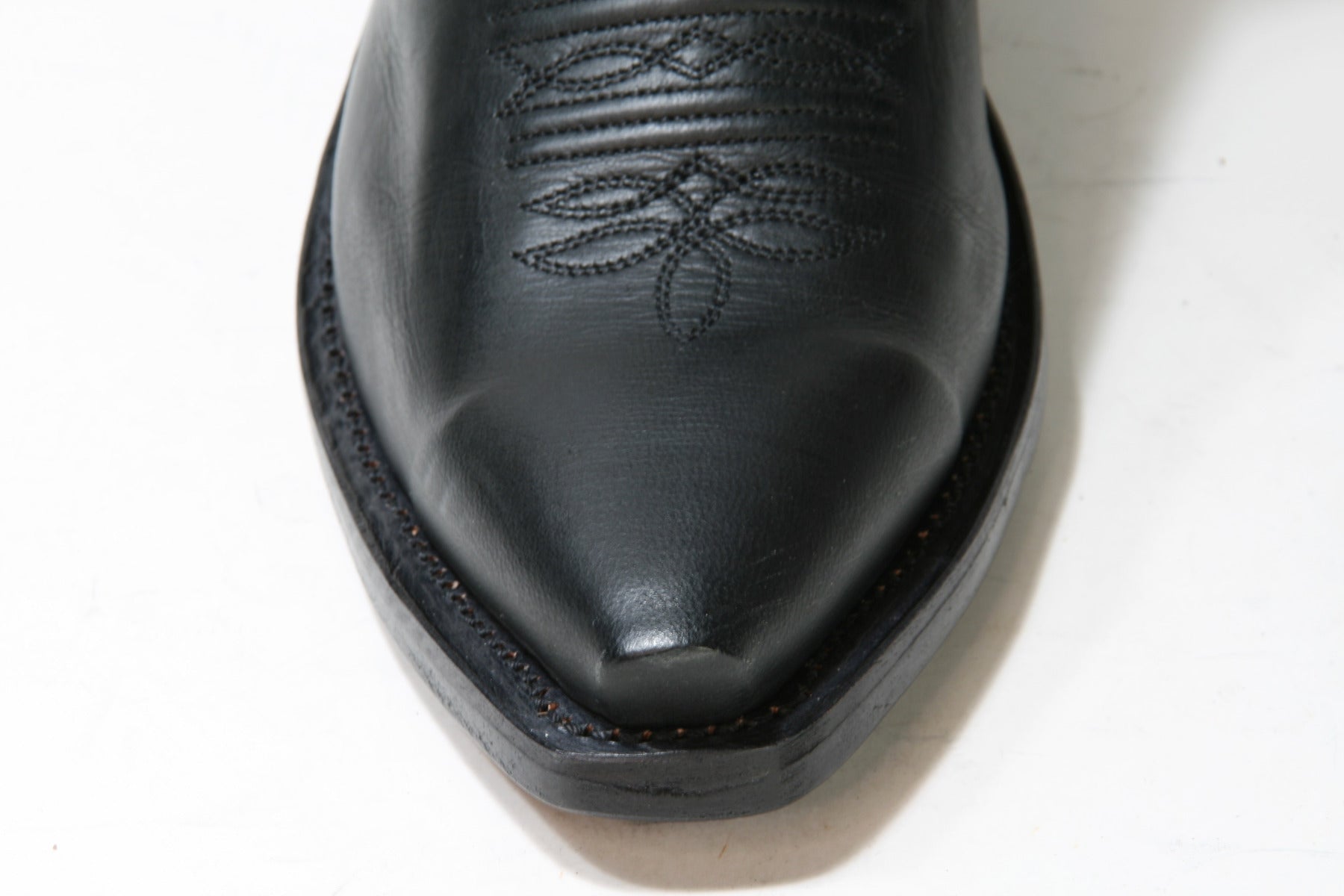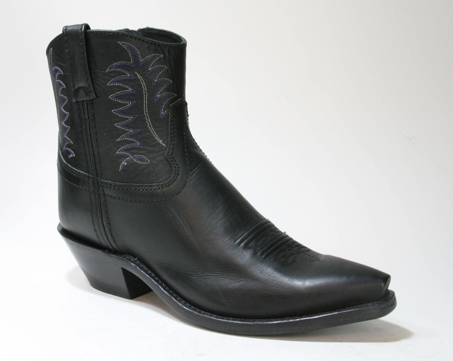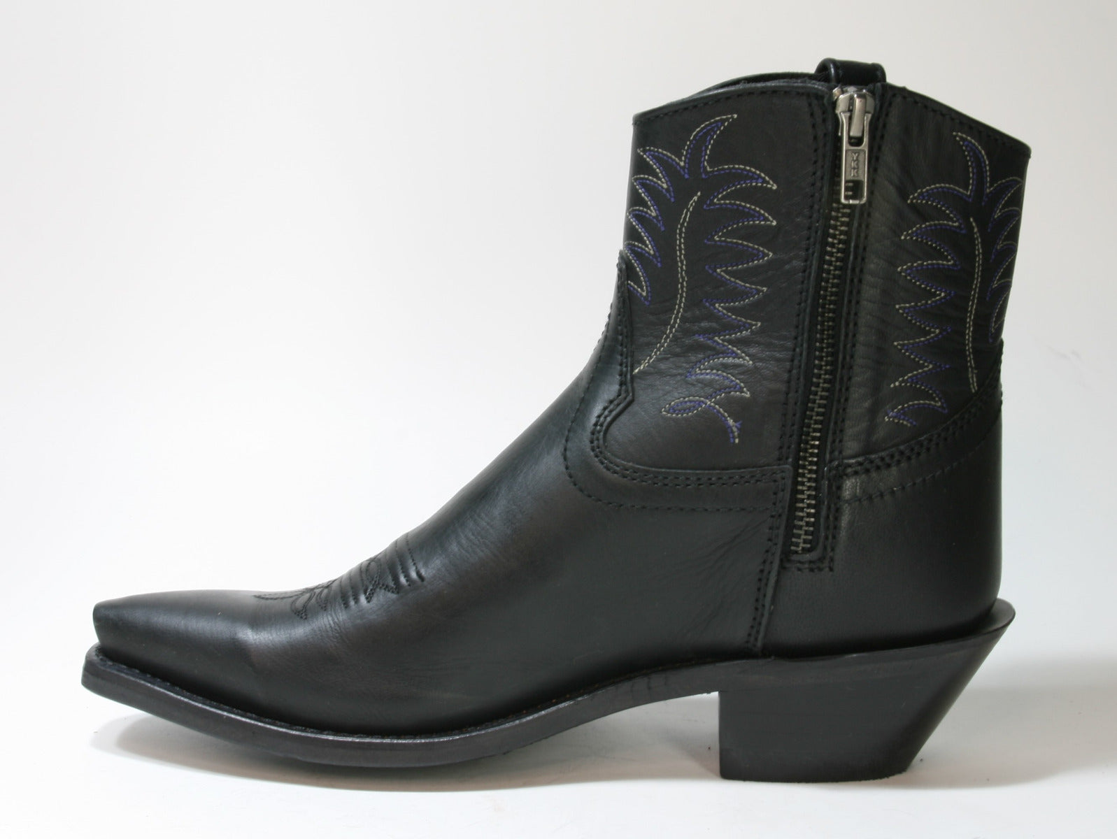 Cowboy-Stiefeletten mit Reißverschluss an der Innenseite zum besserem Einstieg. Gemäßigte Spitze und mittlere Absatzhöhe von 4 cm. Super Preis für eine rahmengenähte Stiefelette.