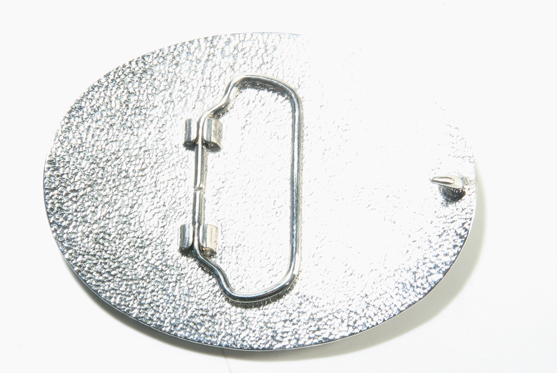 Gürtelschnalle mit geprägtem Leder in Straussenleder-Optik.