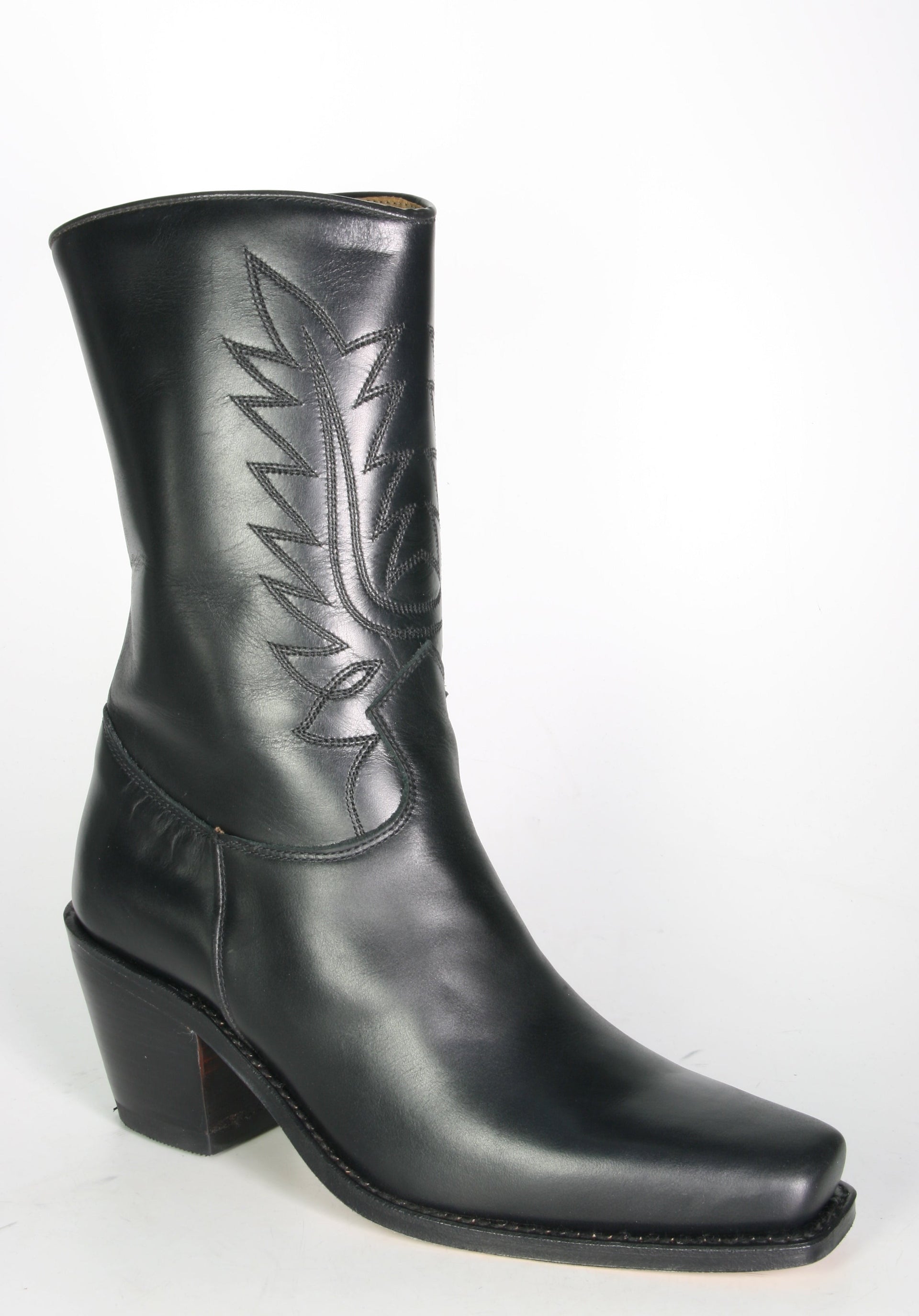 Sendra Kurzstiefel aus schwarzem Rindsleder. Reißverschluss an der Innenseite. Karreeform an der Spitze.