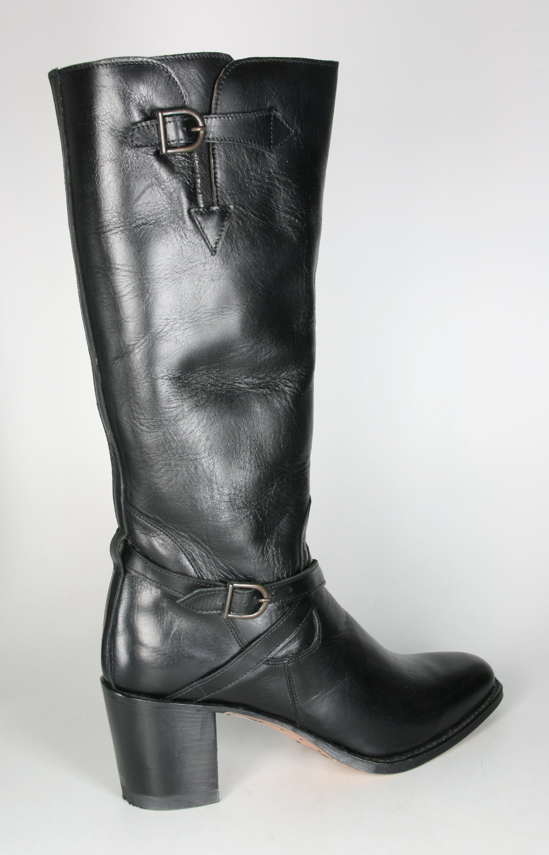 Superschöne Form und sehr bequem. Der Absatz hat eine angenehme Höhe von ca. 6,5 cm. Das schwarze Rindsleder ist sehr robust und doch angenehm zu Tragen.