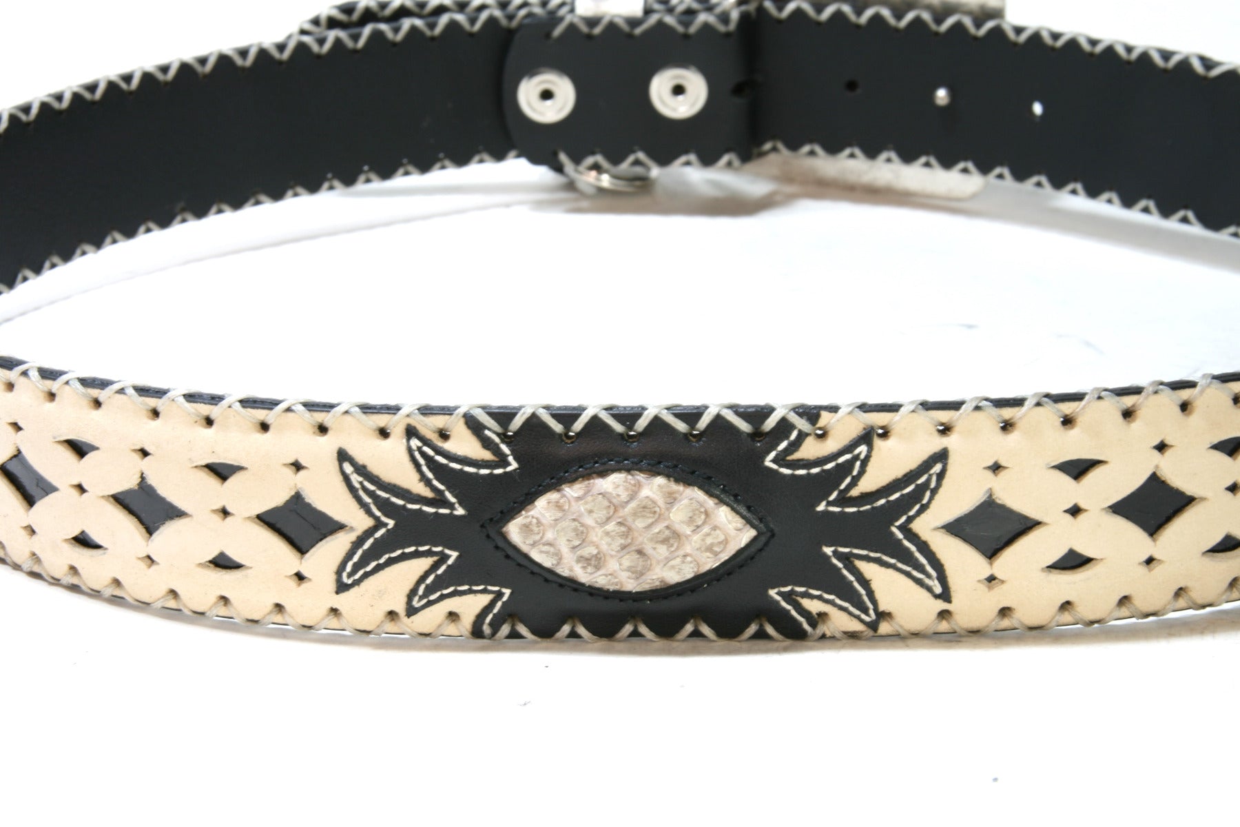Die Gürtelschnalle kann durch Druckknöpfe gewechselt werden.