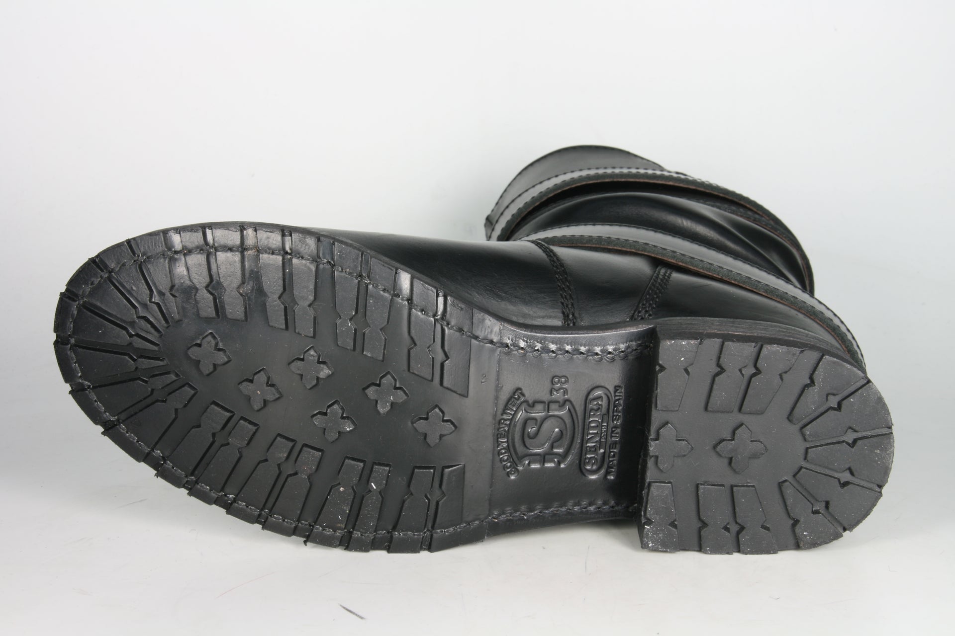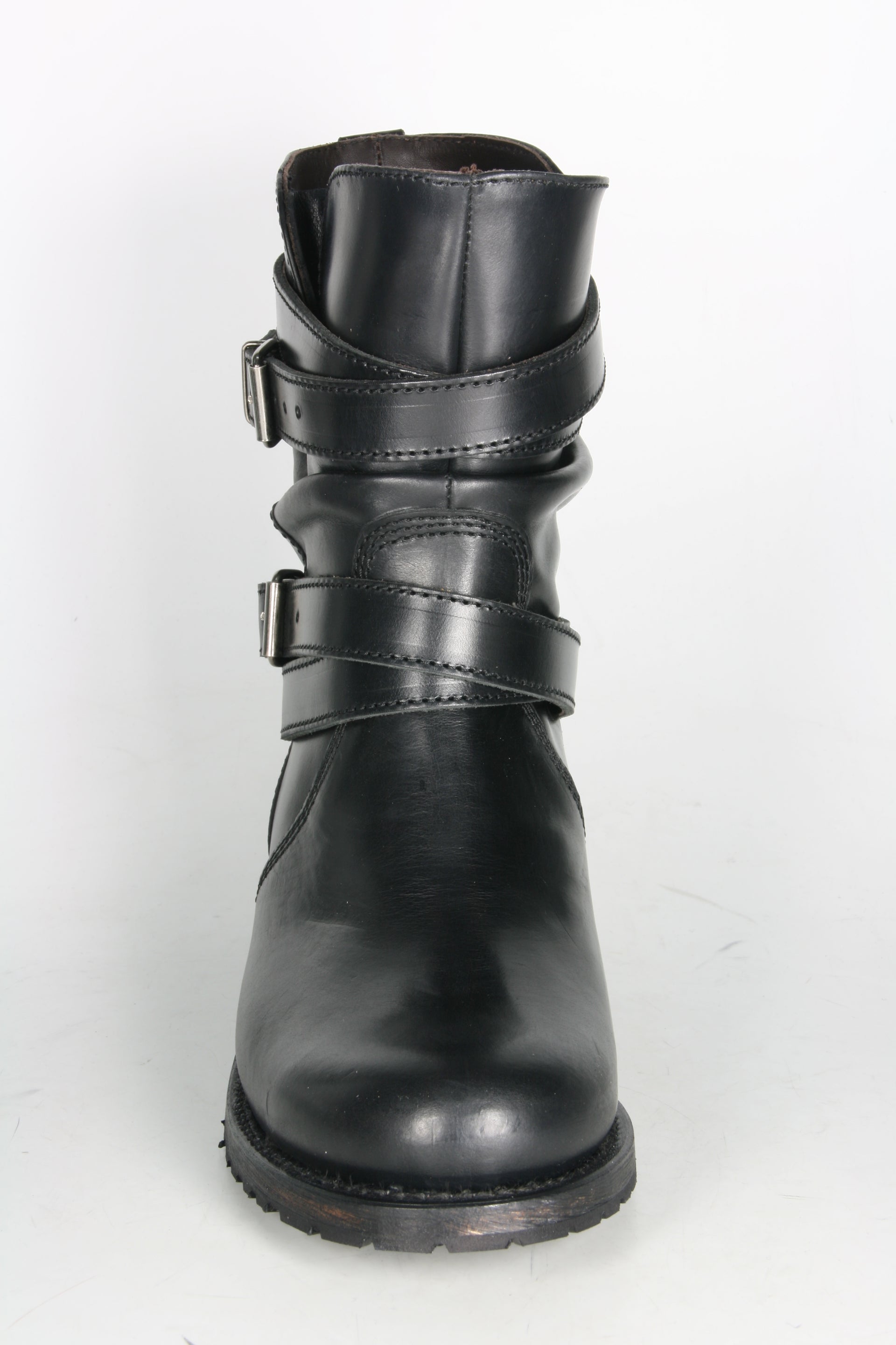 Sendra Bikerboots aus schwarzem Rindsleder. Zwei abnehmbare Riemen