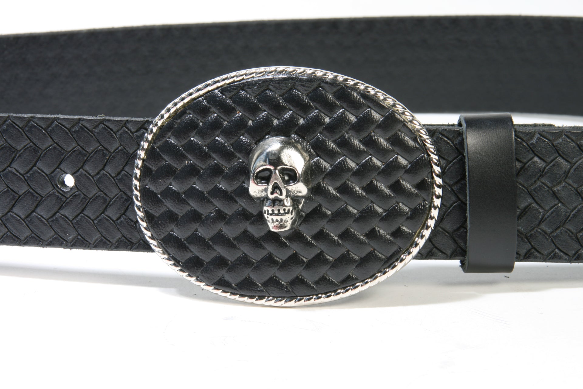 GS 32796 RB Wechselgürtel geflochten Black Totenkopf