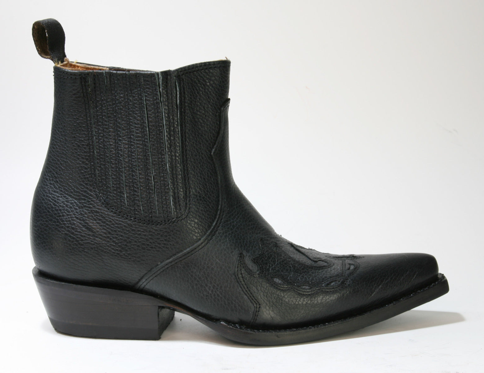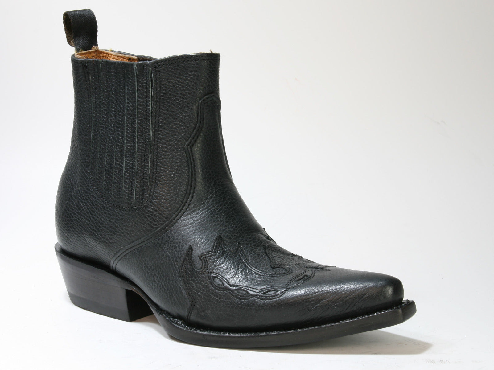Stiefeletten von Stars & Stripes aus Rindsleder. Das schlichte Modell hat mit dem Flammenmuster eine Besonderheit kreiert.
